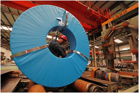 An employee of a strip steel manufacturer in Luannan county, Tangshan of north China’s Hebei province works at a production line, March 26, 2020/ Photo by Zhang Yongxin, People’s Daily Online