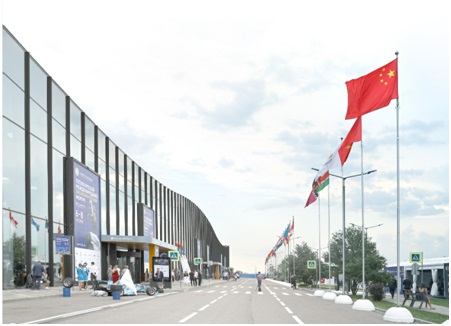 National flags of participating countries flutter outside the venue of the 23rd St. Petersburg International Economic Forum (SPIEF) in Russia. (By Bai Yang from People’s Daily)