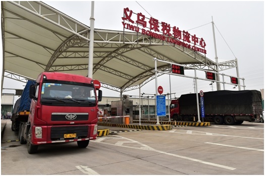 Trucks loaded with daily use run through the Yiwu Bonded Logistic Center in Yiwu, east China’s Zhejiang province on Feb. 25, 2019. The foreign trade of Yiwu hit a monthly record this January. Photo: People’s daily online