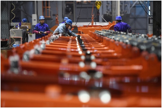 Workers produce forklift parts at Lonking (Jiangxi) Machinery Co., Ltd in Gao’an, east China’s Jiangxi province, Feb. 26, 2019. (Photo by Zhou Liang, People’s Daily Online)