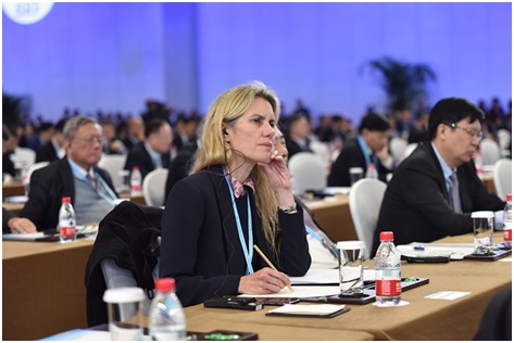 A foreign representative listens to a speech delivered by a participant at the Belt and Road CEO Conference. Photo by Meng Xianglin, People’s Daily
