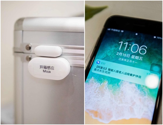A complete set of remote care solutions customized by Alibaba Cloud IoT engineers enables 24-hour remote care. If the smart medicine box is not opened, the phone will receive a message. Photo by Xu Kangping from People’s Daily Online