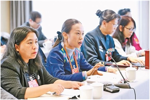 Members of the 13th National Committee of the Chinese People’s Political Consultative Conference (CPPCC) are discussing the draft foreign investment law in a panel meeting. (Photo by Zhou Can from Yunnan Daily)
