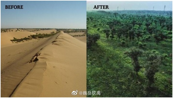 The transformation of the Mu Us Desert is inspiring. Environmental protection is a long-term task in China and ecological restoration a cause that will benefit many generations to come and lays a foundation for long-term development.