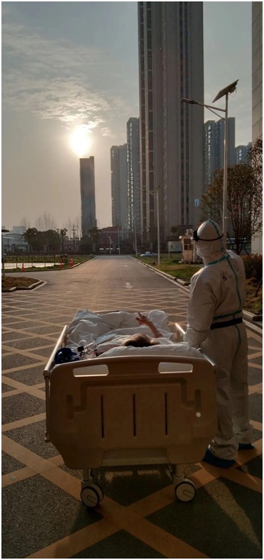 The picture was taken a month ago on Wang’s way to take a CT scan with Liu Kai, a doctor with Zhongshan Hospital affiliated to Fudan University, Shanghai who went to Hubei for assistance. It later went viral and touched many as a glimpse of sunshine, something that had been long absent in the daily life of COVID-19 patients, was particularly valuable.
