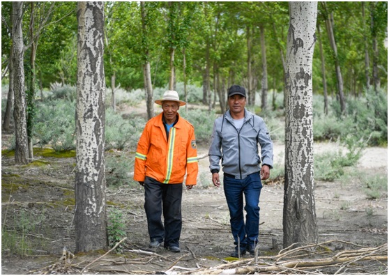 A forest ranger(left) and his son were making a daily inspection in the Yarlung Zangbo River protection forest on July 23, 2018.(Photo: Xinhua News Agency