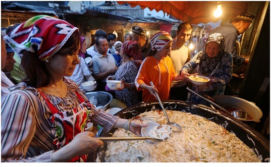| A lively food market in Xinjiang. Photo by Cui Meng / Global Times |