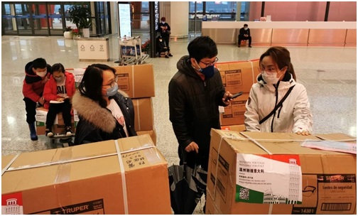 Wenzhou volunteers help transport donations related to COVID-19 for Italy. Photo: courtesy of Blazing Youth
