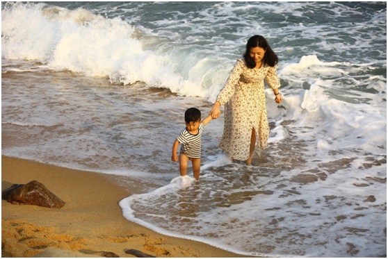 On February 10, 2019, a mother and her child play in the seaside of Nanshan District, Sanya City, Hainan Province. (Chen Wenwu/People’s daily online)