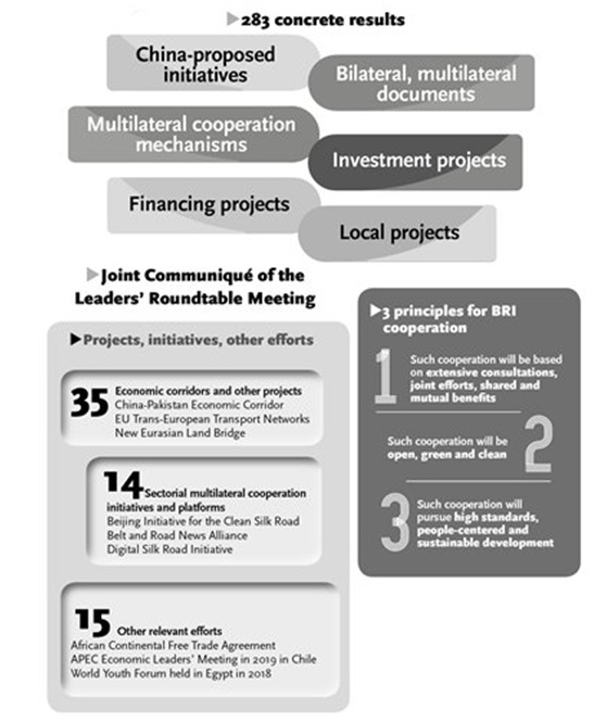 A joint communiqué released after a leaders’ roundtable meeting at the forum on April 27 stressed that cooperation of BRI should be open, green and clean, and based on extensive consultations, joint efforts, shared and mutual benefits.